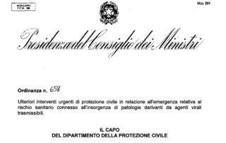 Ecco l’ordinanza della Presidenza Consiglio dei Ministri n. 658 riguardante ulteriori interventi di protezione civile in merito all’emergenza relativa al rischio sanitario.