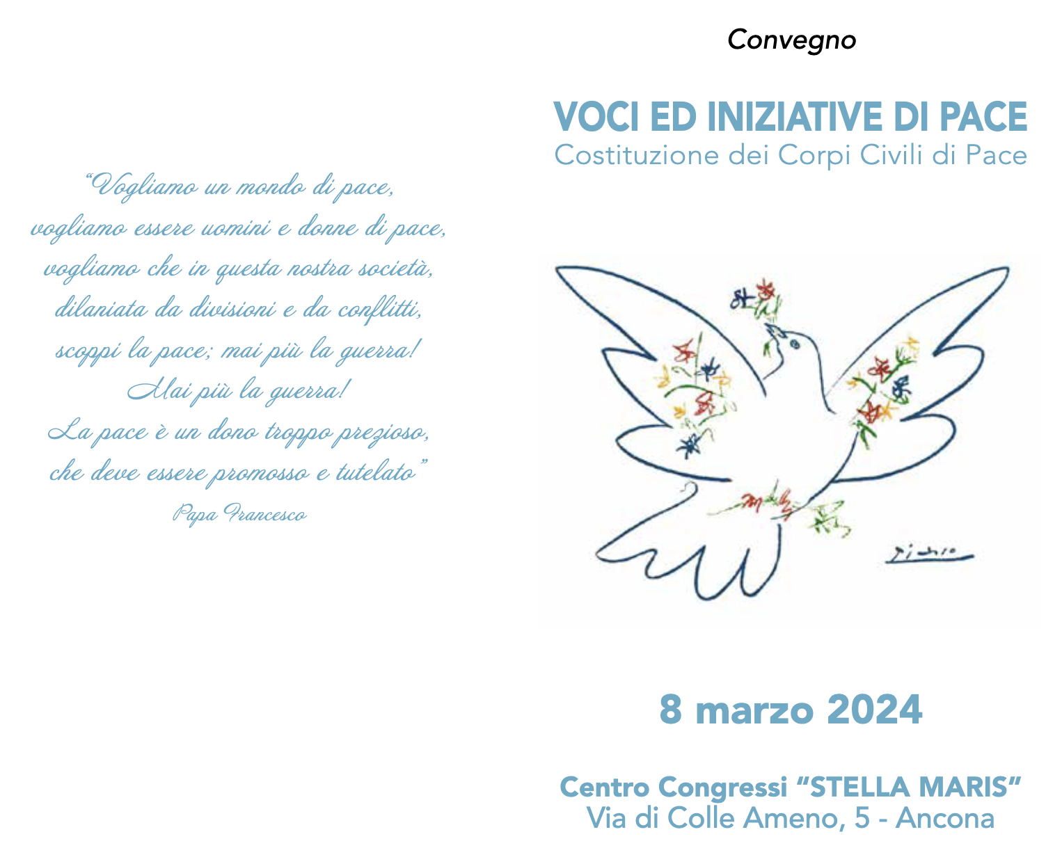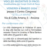 ANCONA – Prosegue l’impegno dell’Associazione dei Comuni a favore della pace ed Ancona è stata scelta per ospitare l’incontro sul tema “Voci ed Iniziative di Pace” in programma venerdì 8 marzo dalle ore 9 nella sala convegni della Domus Stella Maris a Torrette di Ancona. L’iniziativa organizzata da Anci Marche, l’Area Cooperazione Internazionale di Anci e il Coordinamento Nazionale dei Direttori e Segretari delle Anci regionali è coerente con le iniziative già svolte a sostegno della pace. Nello scorso ottobre una fiaccola della pace accesa sulla tomba di San Francesco ad Assisi avrebbe dovuta essere recapitata a Betlemme ma, a causa del conflitto, non è stato possibile consegnarla e quindi verrà consegnata direttamente a Padre Ibrahim Faltas, Vicario Generale della Custodia della Terra Santa, che parteciperà all’evento ad Ancona.